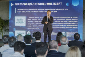 Outro ponto alto foi a apresentação sobre o Novo Test Bed da Multicert, uma plataforma colaborativa destinada ao desenvolvimento de soluções digitais inovadoras, com foco em certificação digital, autenticação e assinatura eletrónica qualificada. Esta plataforma proporciona um ambiente seguro para PME’s e startups testarem e validarem os seus produtos digitais, alinhando-se com os objetivos do PRR ao promover práticas empresariais mais seguras e eficientes.